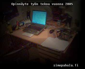 Muistan kun esitin tuota opinnäytetyötäni https://www.simopahula.fi/np_maalis05.htm#esitetty Se oli jännä tilanne, mutta onnistunut.